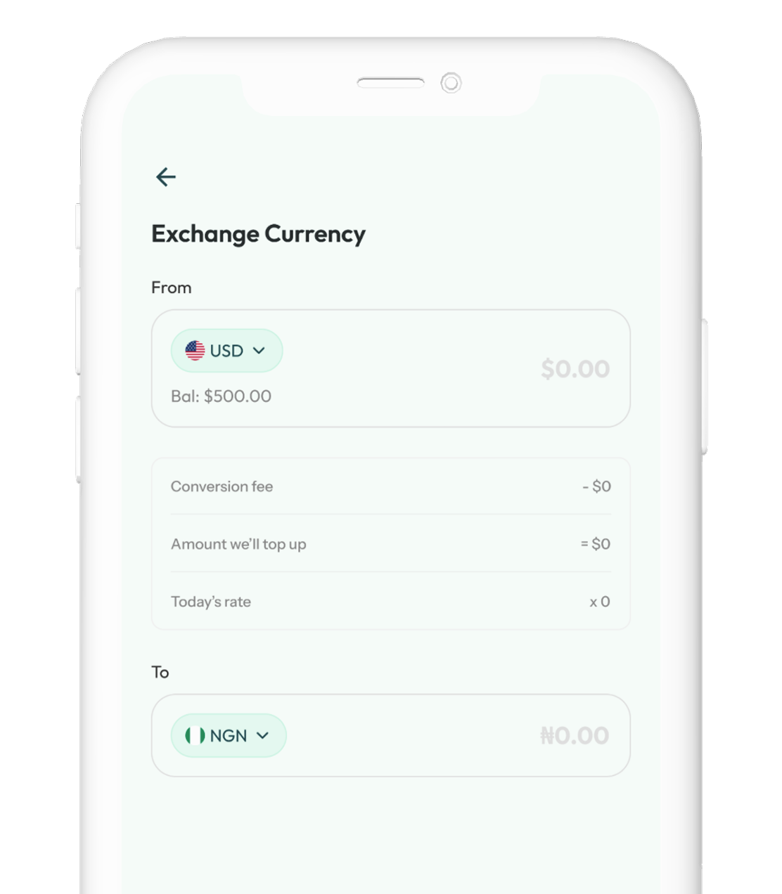 Convert between NGN, GHS, KES, and USD anytime, anywhere.