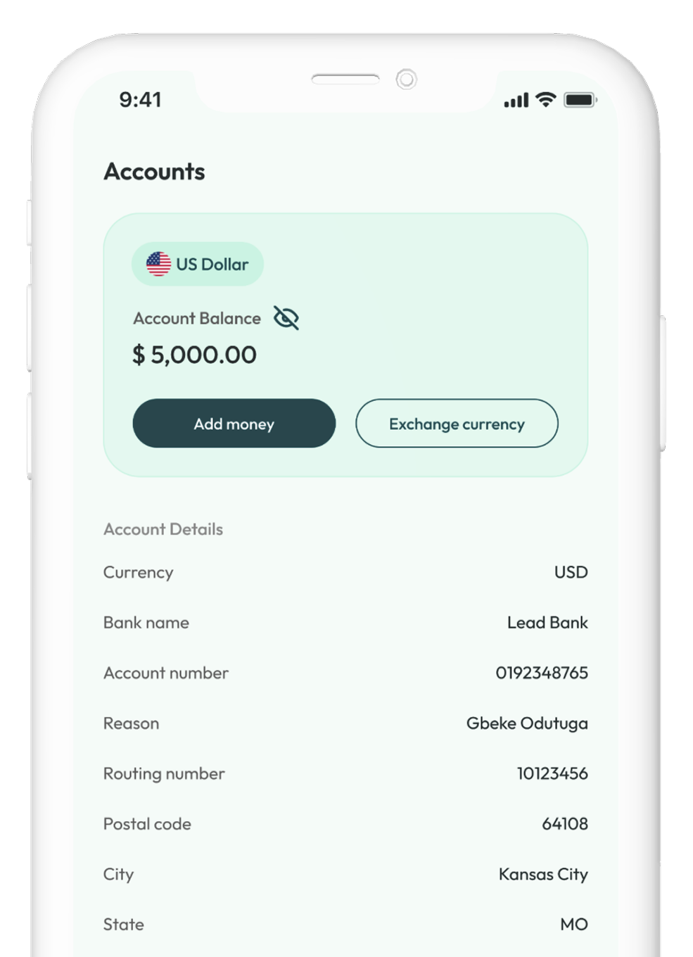 Receive Payments Globally: Receive USD from anyone from US banks, Upwork, Deel, Twitter, Payoneer, Stripe, PayPal, Zelle, Revolut, YouTube, Fiverr, Gusto, Rippling, and others.